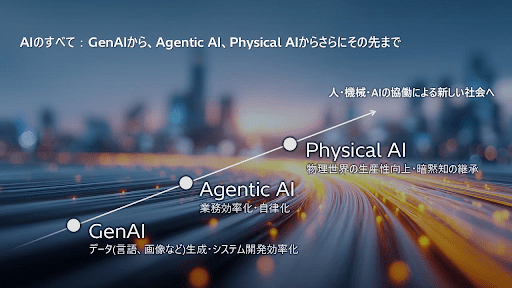 Lumada 3.0のビジョンのもとで日立のAI戦略をけん引しているデジタルシステム&サービスセクターは、生成AIから、複雑なタスクを自律的に実行するためにツールを調整するAgentic AI、そして現在は、インテリジェントシステムがロボティクスやIoTデバイスを通じて現実世界と相互作用し、制御するPhysical AIへと進化を推進しています。