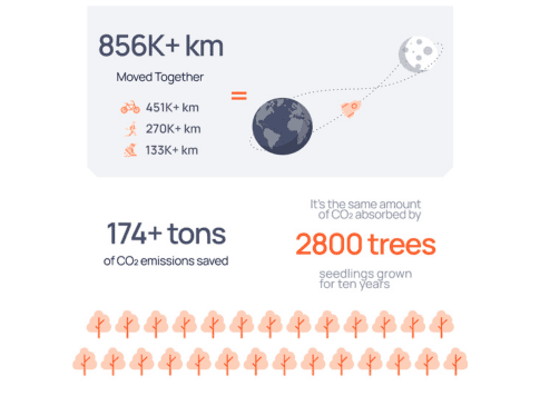 2025 edition ended with 1,000+ participants who had collectively logged over 856,000 kilometers, contributing to a reduction of over 174 tonnes of CO2 emissions by encouraging alternative transportation.