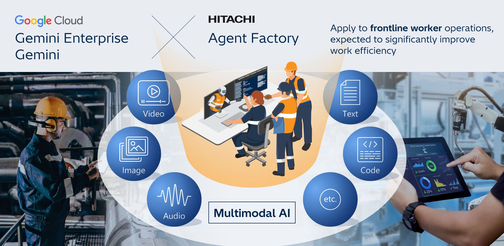 Hitachi has established the “Agent Factory” as its AI agent development environment. By leveraging Google Cloud technology, Hitachi will enhance this environment to enable simpler and faster development of AI agents tailored to specific on-site tasks and applications.